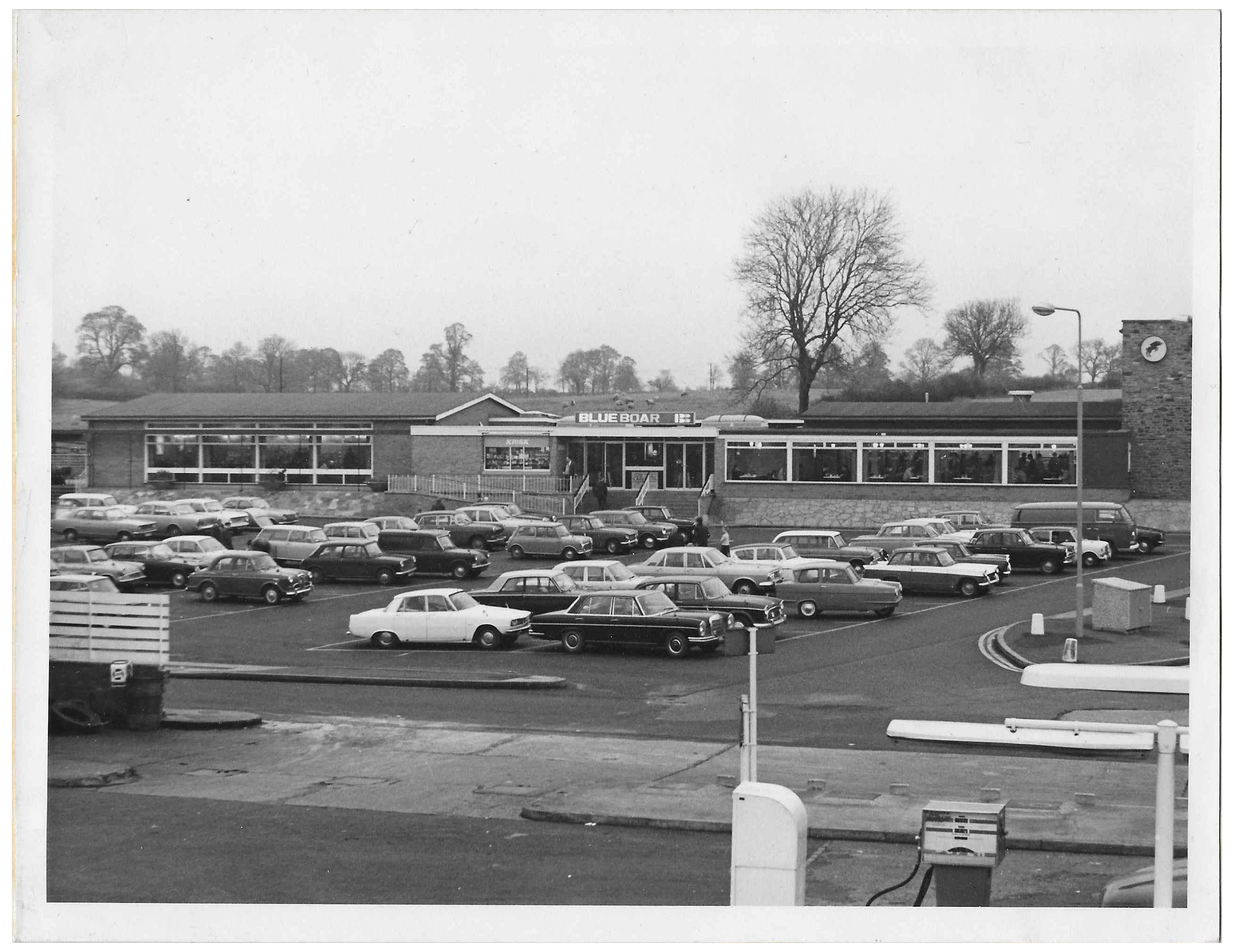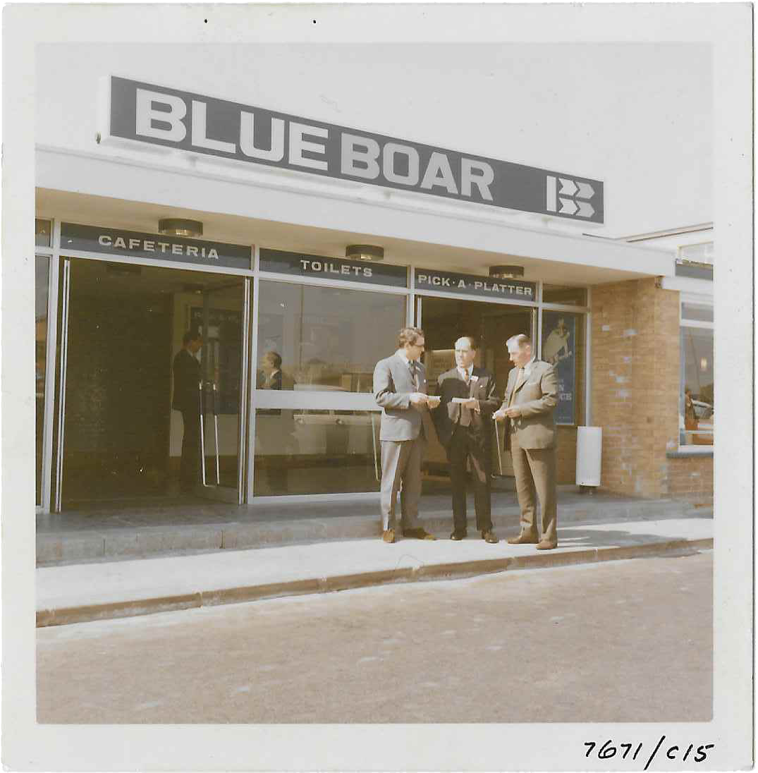 In August 1955 when the final line of the road, that became Britain’s first motorway (M1) was announced in the national press, Mr. Lyndon Smith lost no time in submitting a tender for the site that became the Watford Gap. It was four years later, in August, that Blue Boar was notified that is application had been successful and just four months later when the motorway was opened in November 1959 and at the same time the Watford Gap service area, operating from a wooden shed and serving petrol from one pump, opened.
